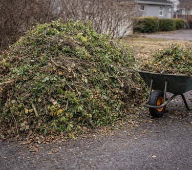 Grass clippings, weeds, small branches, leaves, hedge/ tree trimmings